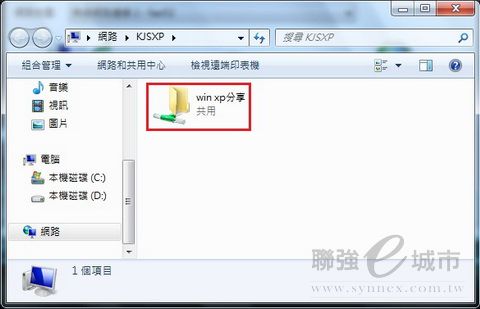 °Ñ¦Ò«e±¡u3-1 Windows 7¤U¬d¬Ý°Ï°ìºô¸ô¤º¨ä¥L¹q¸£(Windows XP)ªº¤è¦¡¡v¨BÆJ¡A§ä¨ìWindows XP¹q¸£ªº¦WºÙ¤§«á¡AÂI¶i¥h§Y¥i¬Ý¨ì¸Ó¹q¸£¦@¥Îªº¸ê®Æ§¨¡C