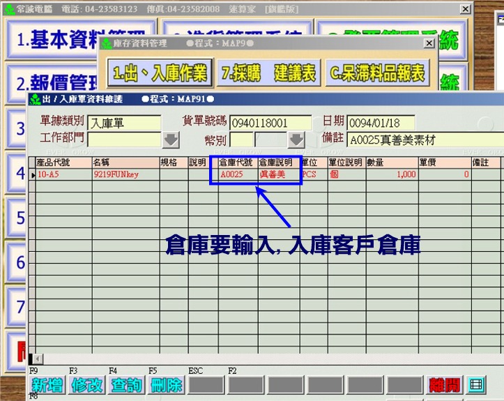 º¥ý,¯À§÷¬O¥Ñ«È¤á(A0025¯uµ½¬ü)¨ºÃä°e¨Óªº,©Ò¥H»Ý¥´¤J®w³æ,¤J®wªºÜ®w´N¿é¤J«È¤áªºÜ®w(¦bÜ®w¨ºÃä·s¼W¤@ӫȤáÜ)
