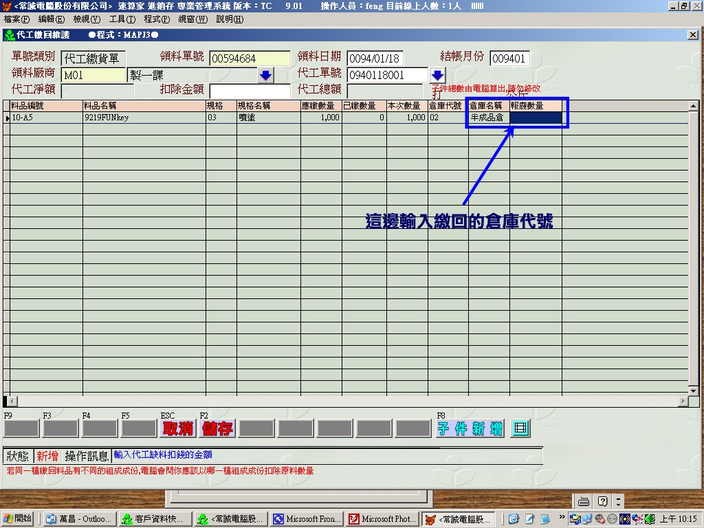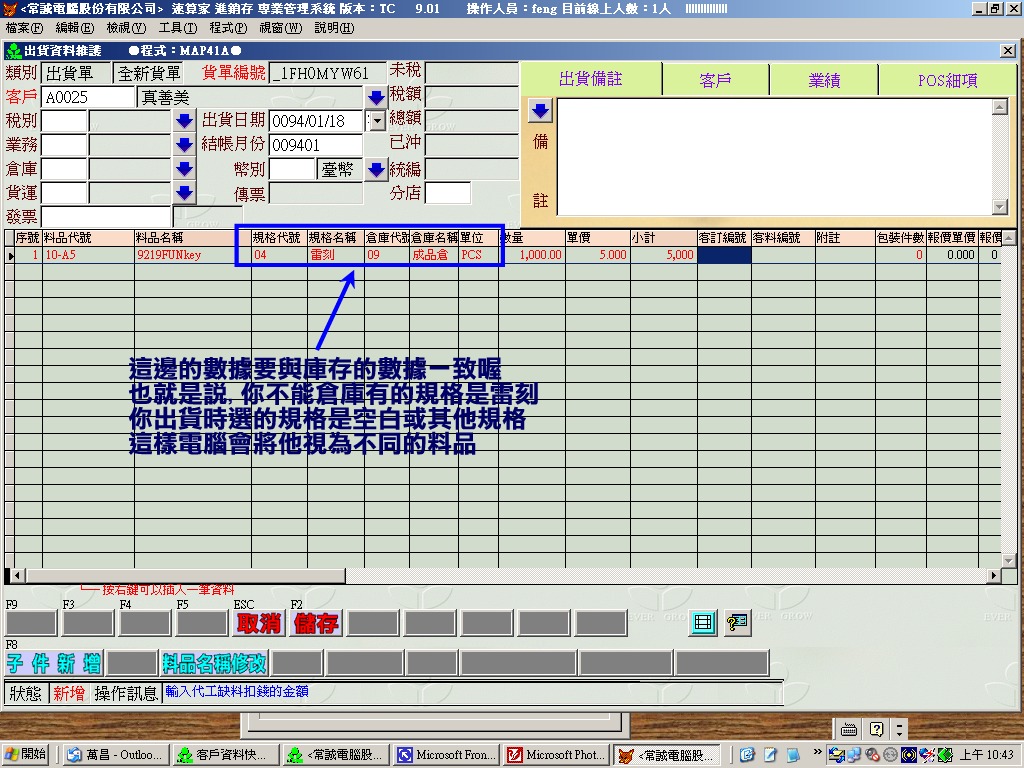 ¨Ò¦p³o¦¸ªº«È¤á¬O (A0025¯uµ½¬ü)³o®a«È¤á,½ÐÀˬdÜ®w¦³¨S¦³ A0025 ³oÓÜ®w,¨S¦³ªº¸Ü½Ð·s¼W (¦p¤U¹Ï)
