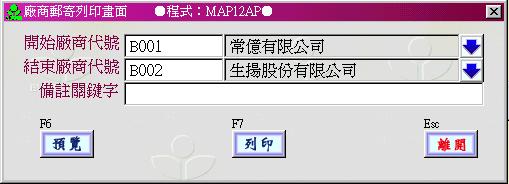 也就是說,如果你只要知道 B001 這個廠商的資料,你可以將結束廠商代號也輸入 B001