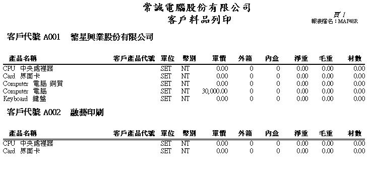 你可以按 F7 鍵列印,或用滑鼠按 [列印] 鍵列印資料