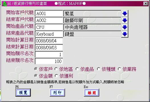 你可以按 F7 鍵列印,或用滑鼠按 [列印] 鍵列印資料