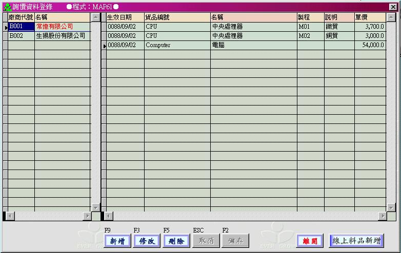 你可以按 F9 鍵新增,或用滑鼠按 [新增] 鍵新增資料