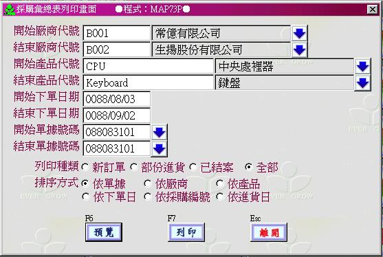 你可以按 F7 鍵列印,或用滑鼠按 [列印] 鍵列印資料