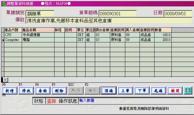 本程式主要目的在於將一個倉庫的料品搬移到一個倉庫,以達到庫存精準的目標