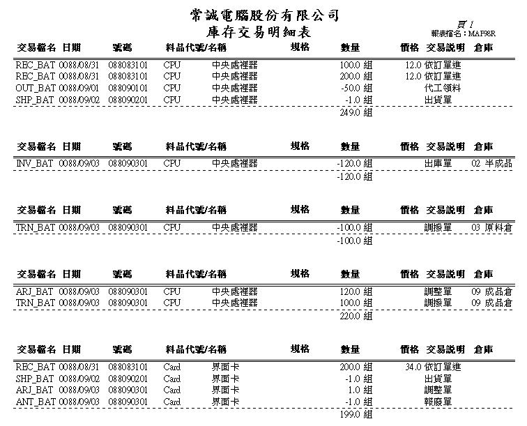 ==== 庫存交易明細表 ====