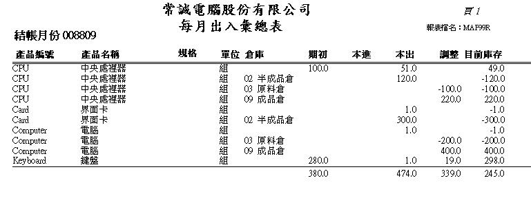 ==== 每月出/入庫彙總表 ====