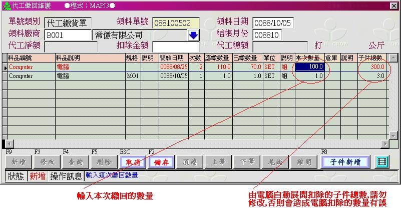 這邊所輸入的資料電腦會自動增加或減少庫存數量