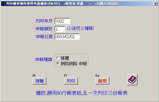 ●列印藥局費用申請總表 : 健保申報總表列印.