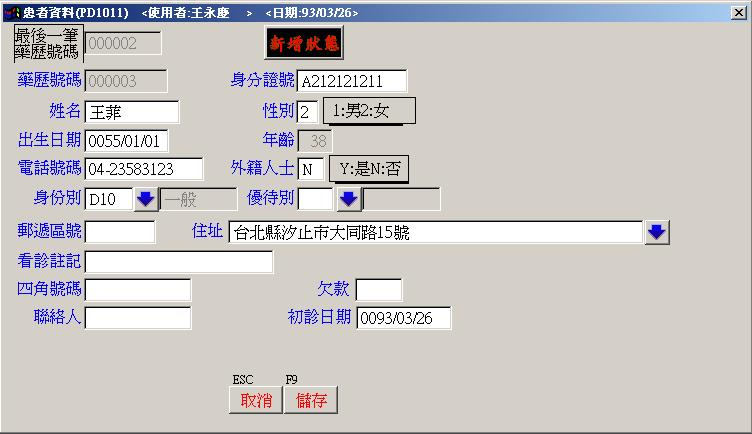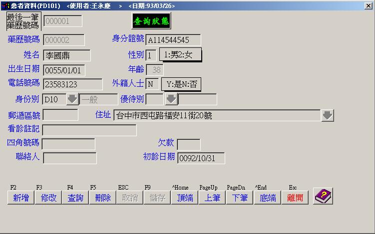 ●患者資料維護 : 病患基本資料.