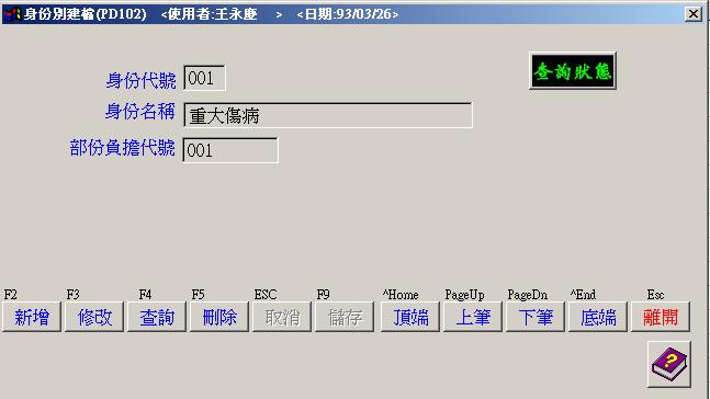 ●身份別建檔 : 病患健保投保身份基本資料.
