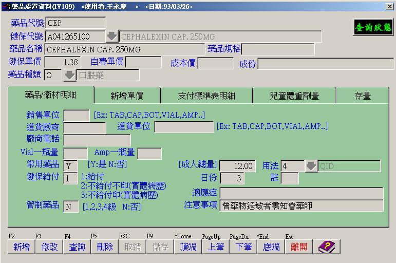 ●藥品建檔 : 藥品基本資料.