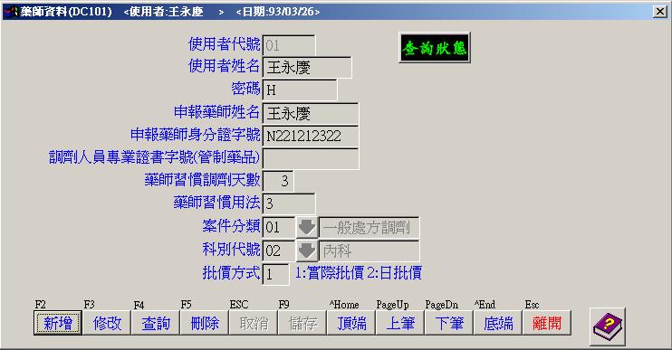 ●藥師資料建檔 : 藥師及行政人員基本資料庫.