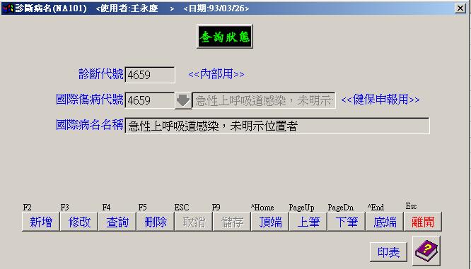 ●診斷病名建檔 : 病歷處方診斷病名基本資料.