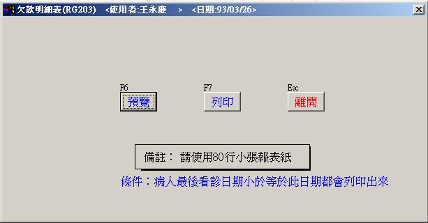 ●藥局參數設定 : 病患欠款統計報表.