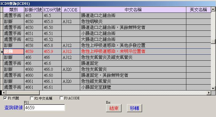 ●查詢ICD-9碼 : 健保所有國劑病名資料庫.