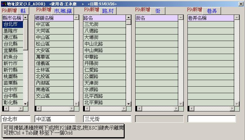 ●地址建檔 : 提供全省地址資料庫.