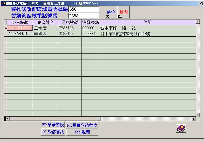 ●整批修改電話: 藥電話區域號碼更改時, 提供整批資料修改快速功能.