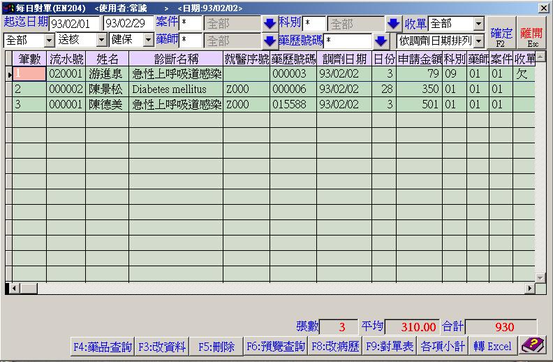 ●每日對單 : 門、住診就診記錄查詢.