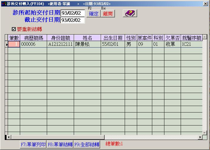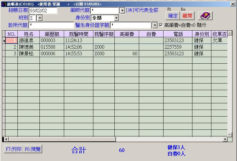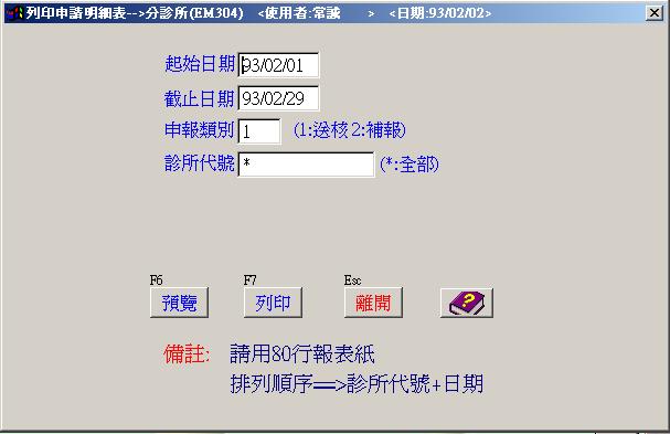 ● 申請明細表-->分診所 : 診所與藥局配合時, 拆帳用之統計明細表。
