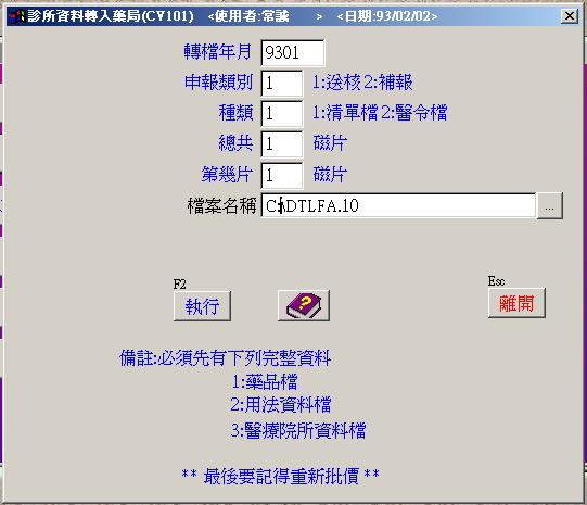 ● 診所轉入藥局(磁片) : 診所與藥局沒有連線時, 可將診所申報磁片轉入, 不需逐筆鍵入。